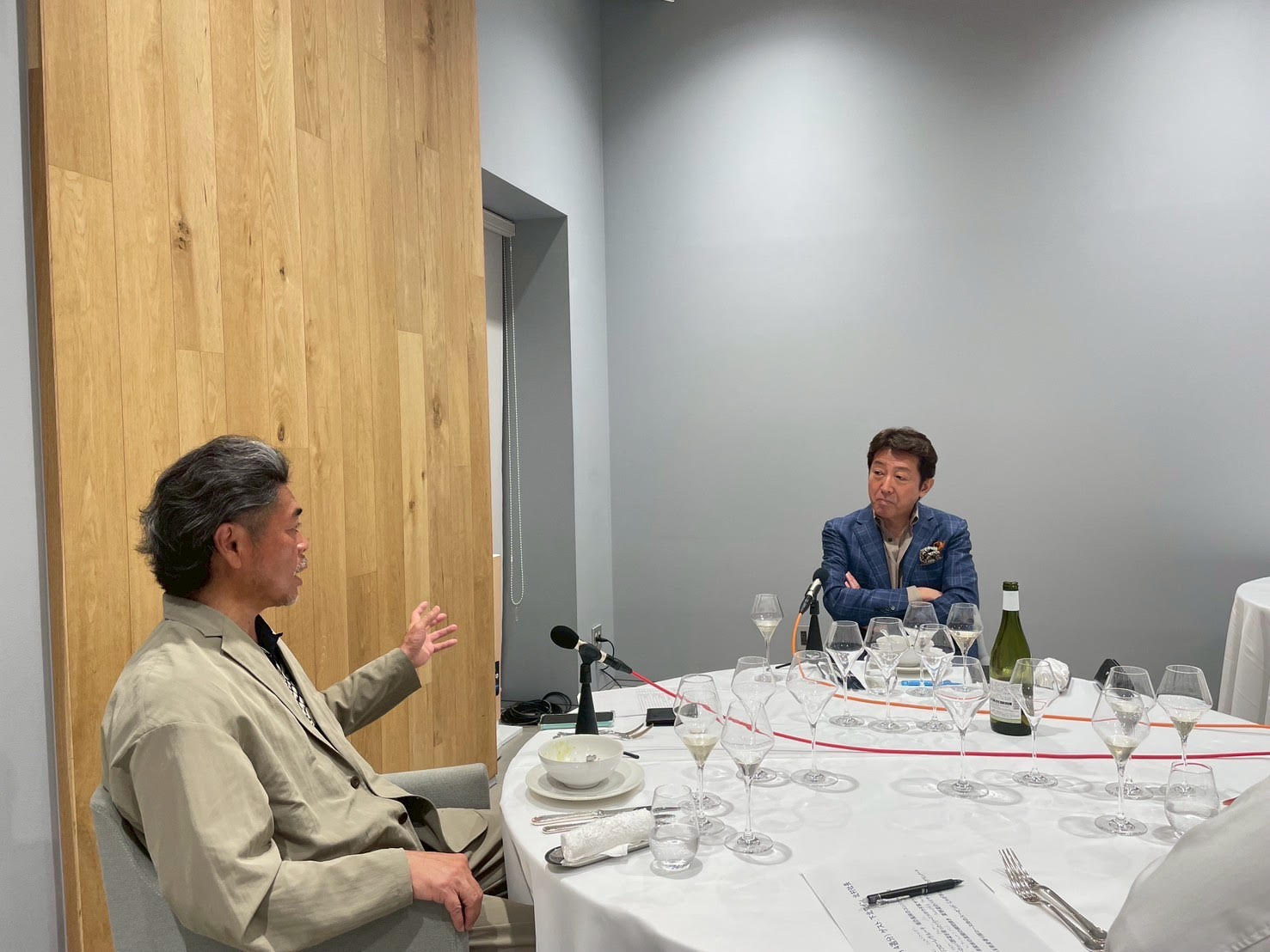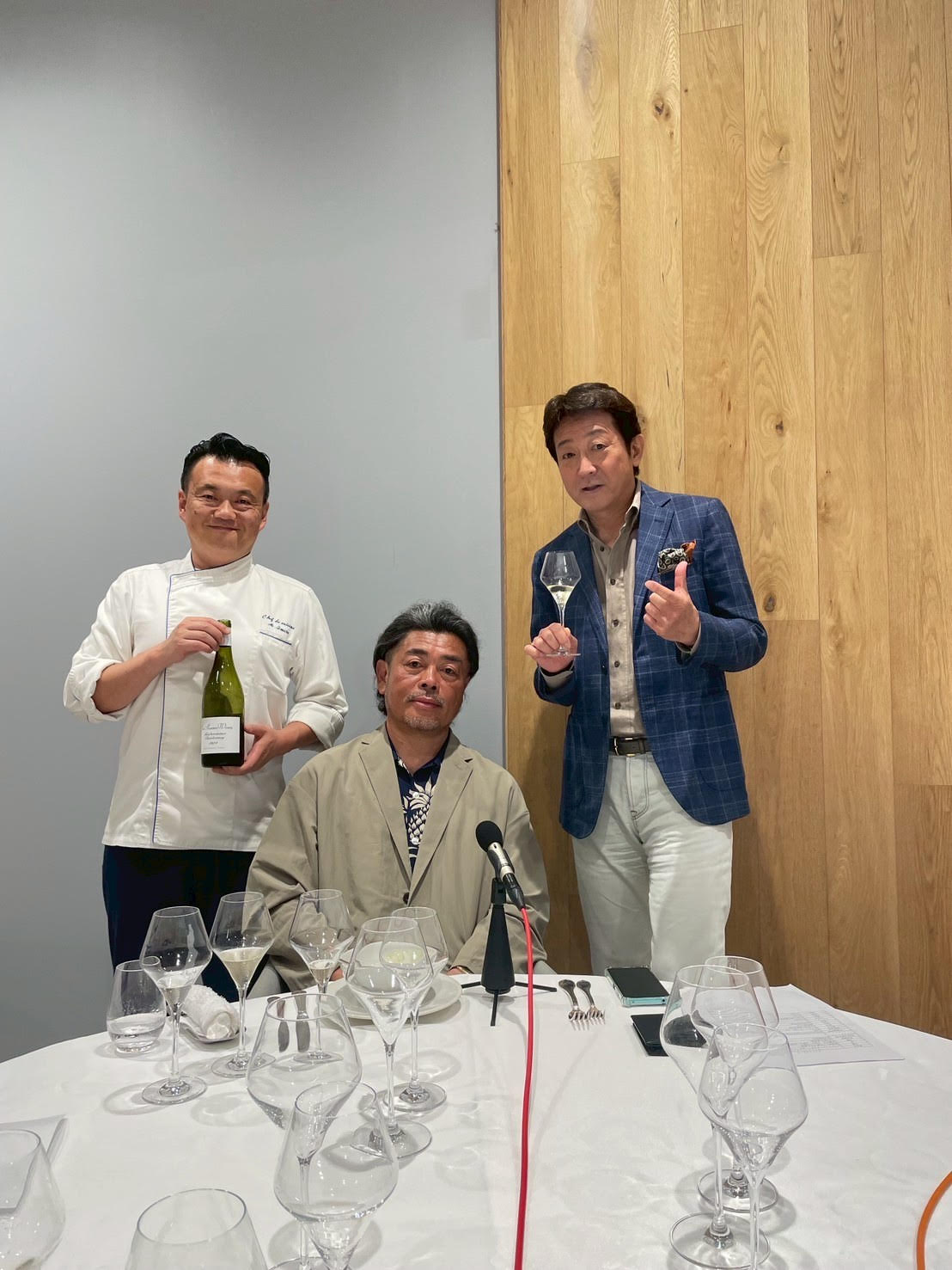 今月のお客様は青森県の下北半島にあります「サンマモルワイナリー」、北村良久社長です。改めましてよろしくお願いします。そしてプリオホールディングス総料理長の井村貢シェフです。