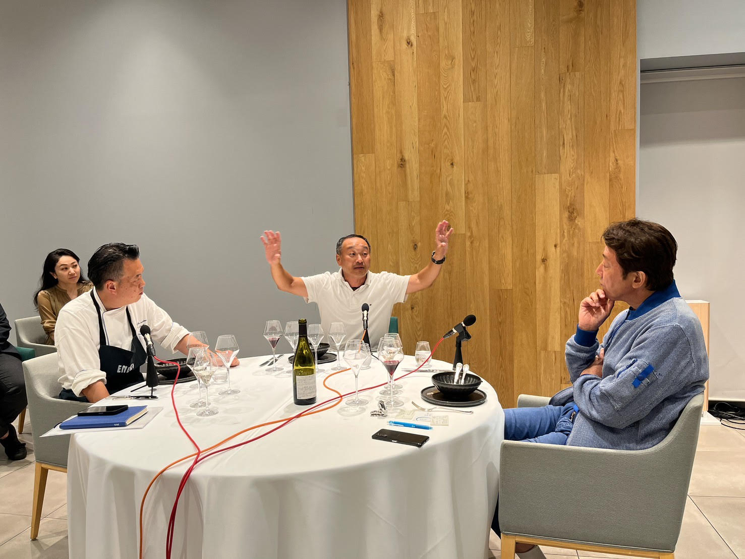 辰巳:和でも洋でも、日本人の作るお魚料理は赤ワインも合わせやすいなと思うんですけど。当初は”お寿司に赤ワイン”ってどうかな、と思ってたんですけど、最近はこういうエレガントなワインにお寿司、和食にはすごく合う。僕も和食と赤ワインしょっちゅう合わせてるんですいよ。この手も近々のワイン会で使わせてもらいたいんですけど、もうちょっと安くなりませんか笑。